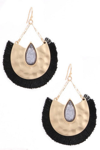Glass Jewel Teardrop Fringe Drop Earrings