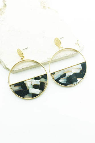 Black and White Half Moon Glass Earrings