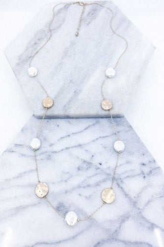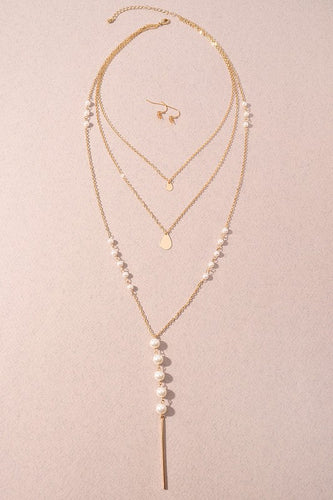 Silver/White Layered Lariat Necklace with Beaded Detail and Charm