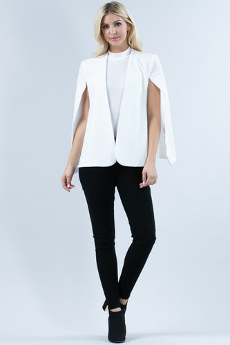 Cape Style Jacket with Round Neck and Pronounced Shoulders