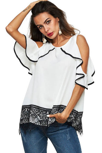 Cold Shoulder Top with Lace Detail