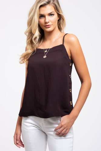 Black Woven Tank with Buttons Down the Side